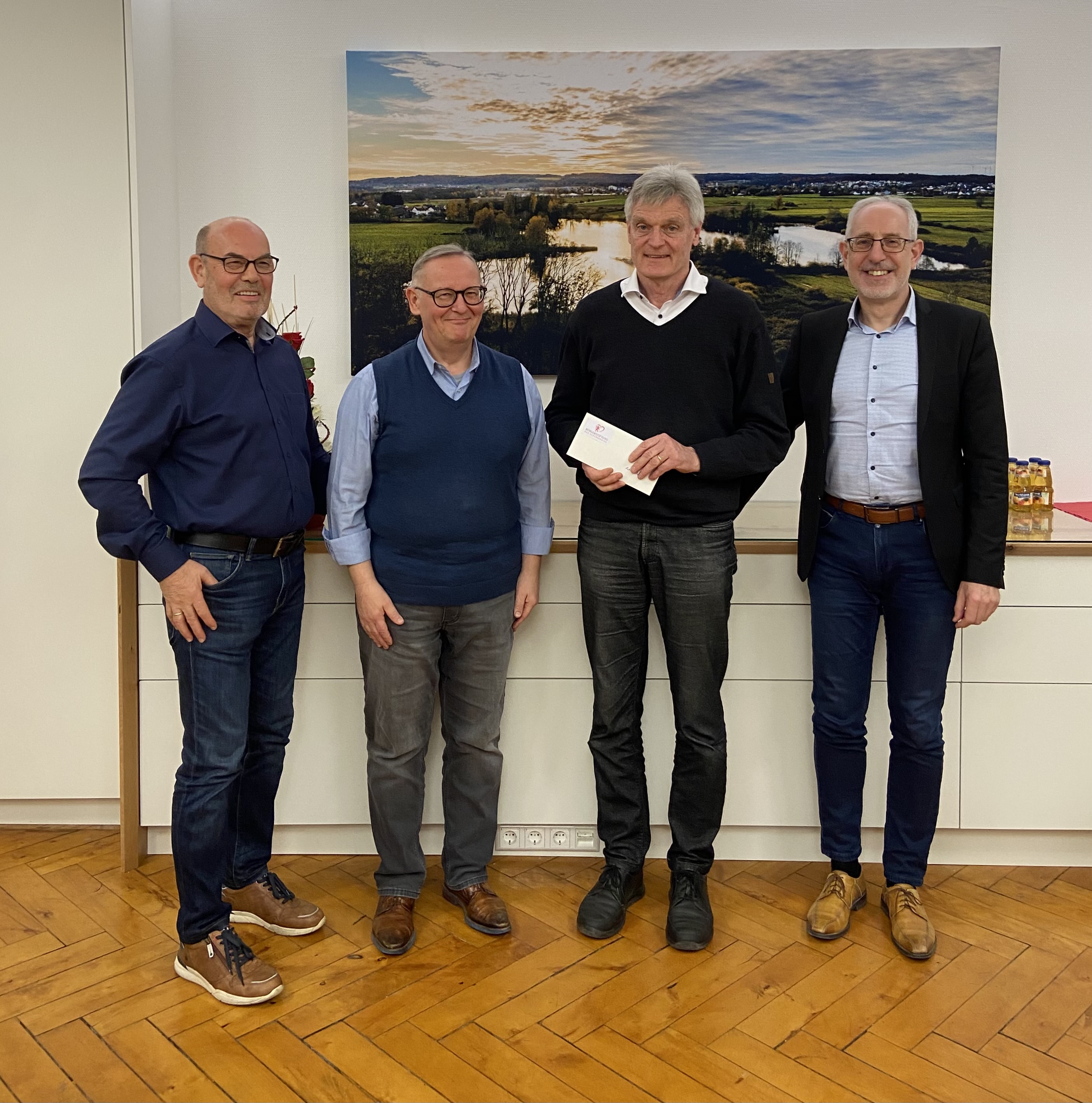 Foto v.l.: Robert Glaner (Bürgerstiftung Beirat Sport), Roland Lotter (Kassier Billardclub), Jürgen Kieble (1. Vors. Billardclub), Stefan Sock (2. Vors. Billardclub)
